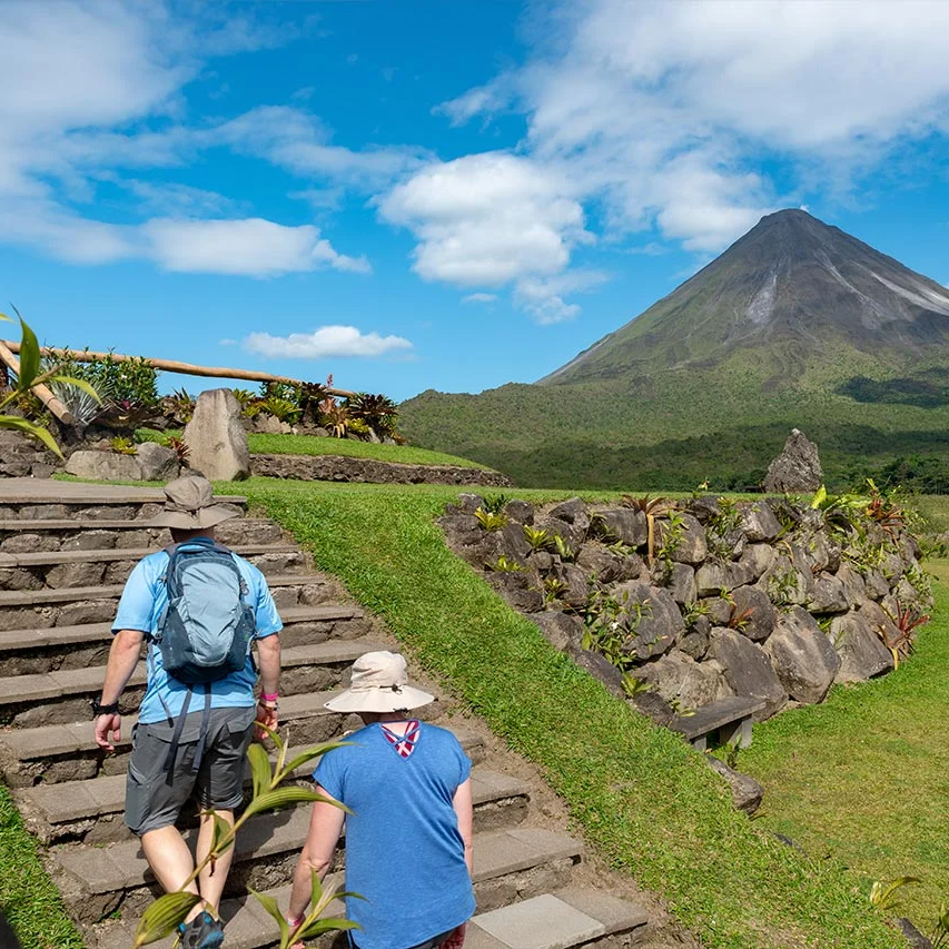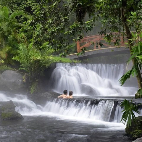 The Arenal Volcano Hike tour is a must-do when you're in La Fortuna! The Arenal Volcano Rainforest hike has much to offer as you walk along the base of Costa Rica's most famous volcano. In addition, take in the breathtaking views of the lava flow. The experienced, bilingual naturalist guide will point out interesting plants and wildlife in the vibrant primary and secondary rainforest of the nature reserve that skirts the Arenal Volcano Park. This hike takes about 1.5 to 2 hours. Then it's time to head to the Hot Springs. Enjoy different volcanic hot pools, swim-up bars, free lockers, and restaurants, with friendly, personalized service. Afterward, enjoy a delicious dinner at the resort restaurant.
