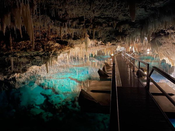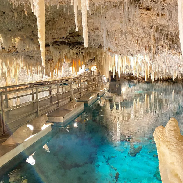 Discover one of Bermuda's oldest living treasures, where you'll marvel at stunning stalactite and stalagmite formations as you descend 83 gradual steps to a floating pontoon pathway, guiding you through more of this remarkable natural wonder.