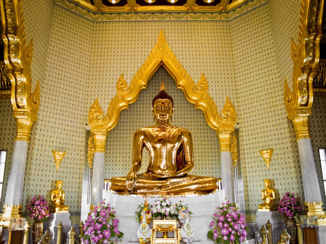 Please list two to three preferred attractions: Grand Palace and Wat Phra Kaew (Temple of the Emerald Buddha), Wat Arun (Temple of Dawn), Wat Pho (Temple of Reclining Buddha), Wat Saket (Golden Mountain), Wat Traimit (Temple of the Golden Buddha), Wat Benchamabophit (Beautiful Marble Temple), Pak Klong Talad (Flower Market), Chinatown (Yaowarat), Erawan Shrine (Four-Faced Buddha), Chatuchak Weekend Market (weekend only), Jodd Fairs Night Market (formerly Talad Rot Fai Ratchada), and Jim Thompson House Museum when making your booking request.