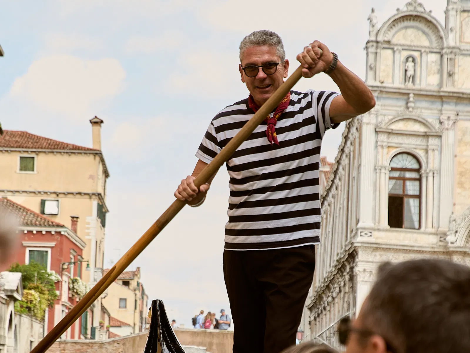 End your tour with a classic 30-minute Venetian gondola ride, providing a unique vantage point to view the city's enchanting canals. As you glide through the waterways, your gondolier might serenade you, enhancing the experience with traditional Venetian charm.