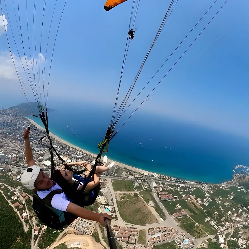 Begin with a convenient hotel pick-up, then enjoy a two-hour coastal drive to Alanya. Your adventure begins high above the city, where pilots prepare you for a breathtaking paragliding flight. Soar for 15-20 minutes above Alanya's stunning coastline, taking in panoramic views and an adrenaline rush like no other.