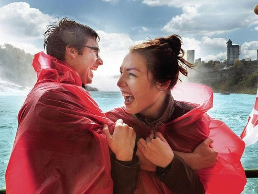 A guided tour of Niagara Falls, Canada, featuring Journey Behind the Falls, a Hornblower boat ride, Skylon Tower views, and a scenic Whirlpool Aerocar stop, with hotel pickup and drop-off.