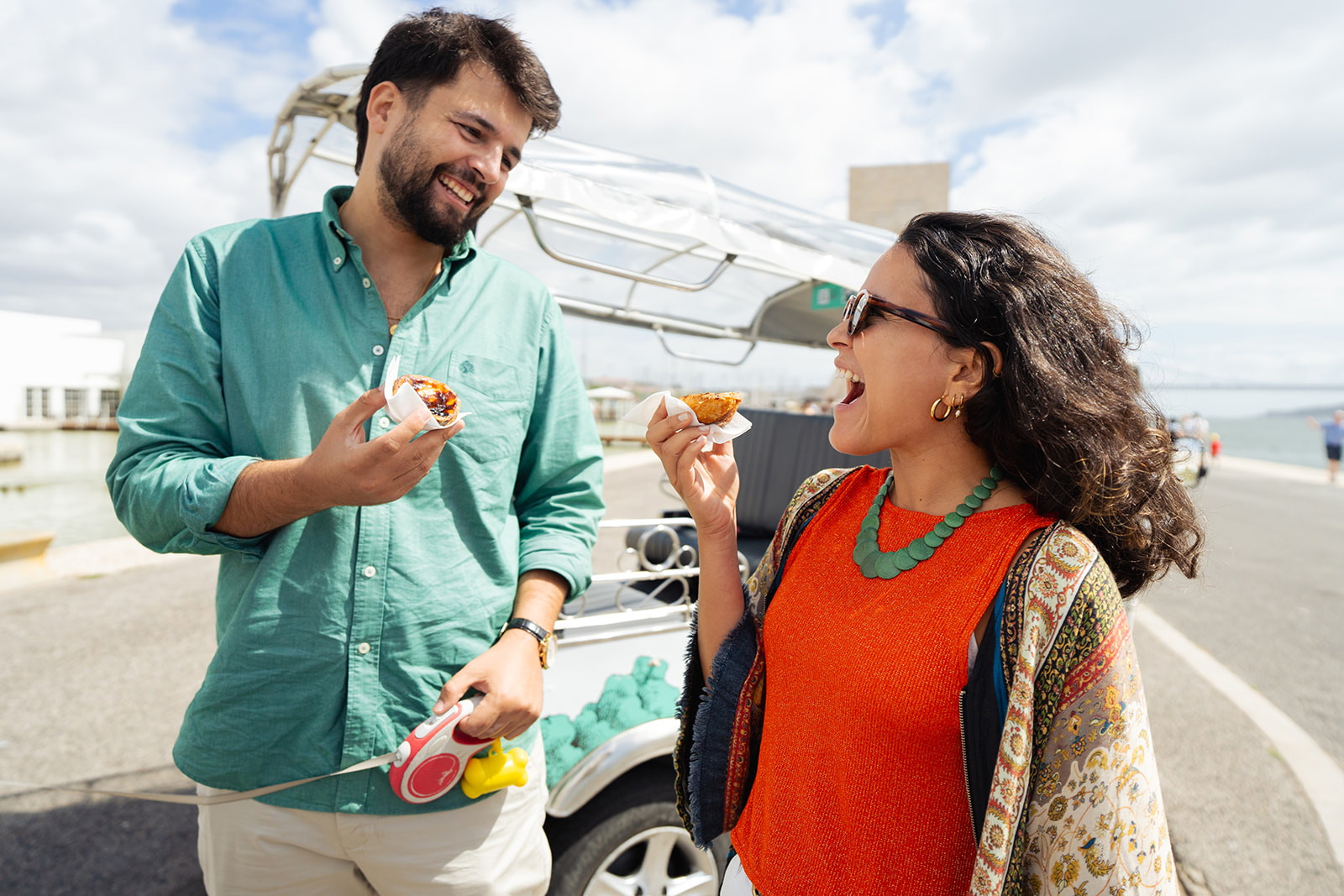 A private, guided Tuk-Tuk tour of Lisbon with comfort, food samples, and an entertaining guide.