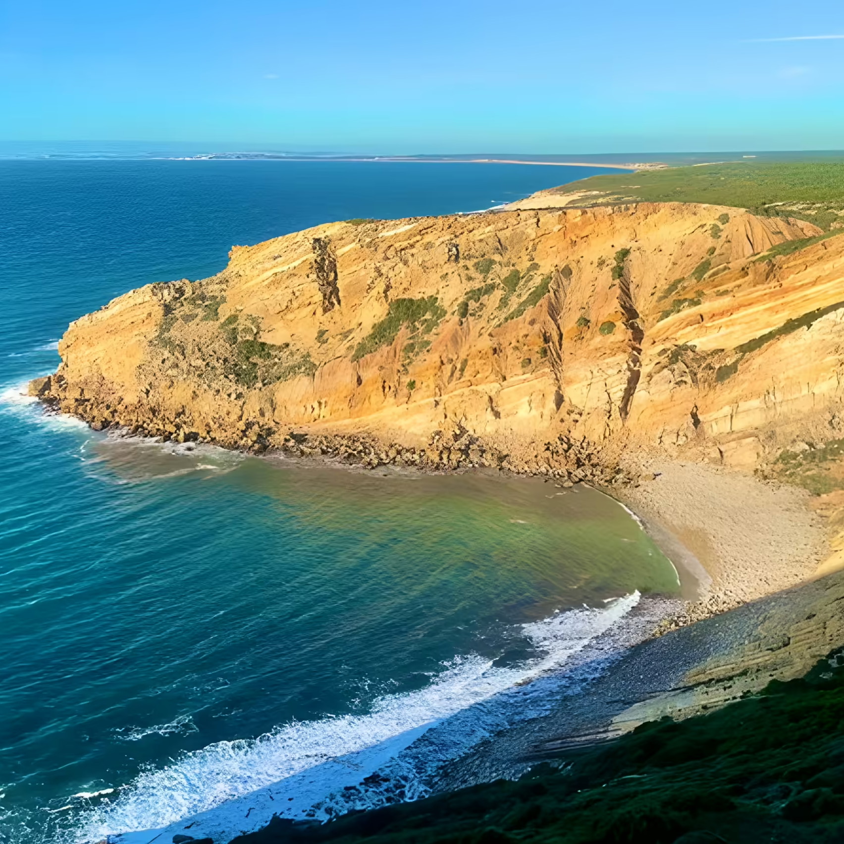 Travel through the lush Arrábida National Park to experience breathtaking views of the ocean and abundant fauna. Explore the area's history and culture while visiting the charming fishing village of Sesimbra. Explore its natural treasures, such as the striking Espichel Cape and the storied Sesimbra Castle.