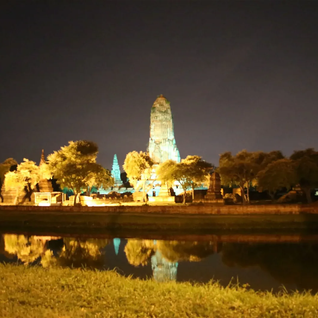 Begin by selecting your bicycle before crossing the Pa Sak River by ferry. Cycle through the bustling Chao Phrom Market and the lively Bang Ian Night Market, where you can sample local treats. After sunset, ride past stunning temples, including Wat Mahathat, Wat Ratchaburana, and Wat Phra Si Sanphet, each rich in history and beauty. Stop for a delicious Thai dinner at a local restaurant before continuing to the breathtaking Wat Chaiwattanaram, beautifully lit under the night sky.