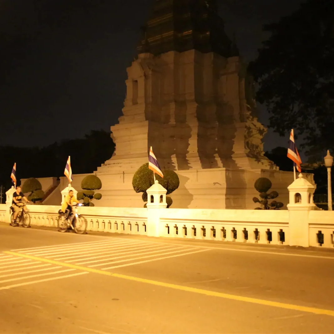 Before returning, pause at Wat Lokayasutharam to admire its massive reclining Buddha. Cycle back past the Ayutthaya City Pillar, where locals pray for good fortune. With cooler temperatures, a relaxed pace, and mesmerizing sights, this evening ride offers a unique way to experience Ayutthaya's rich history and tranquil beauty.