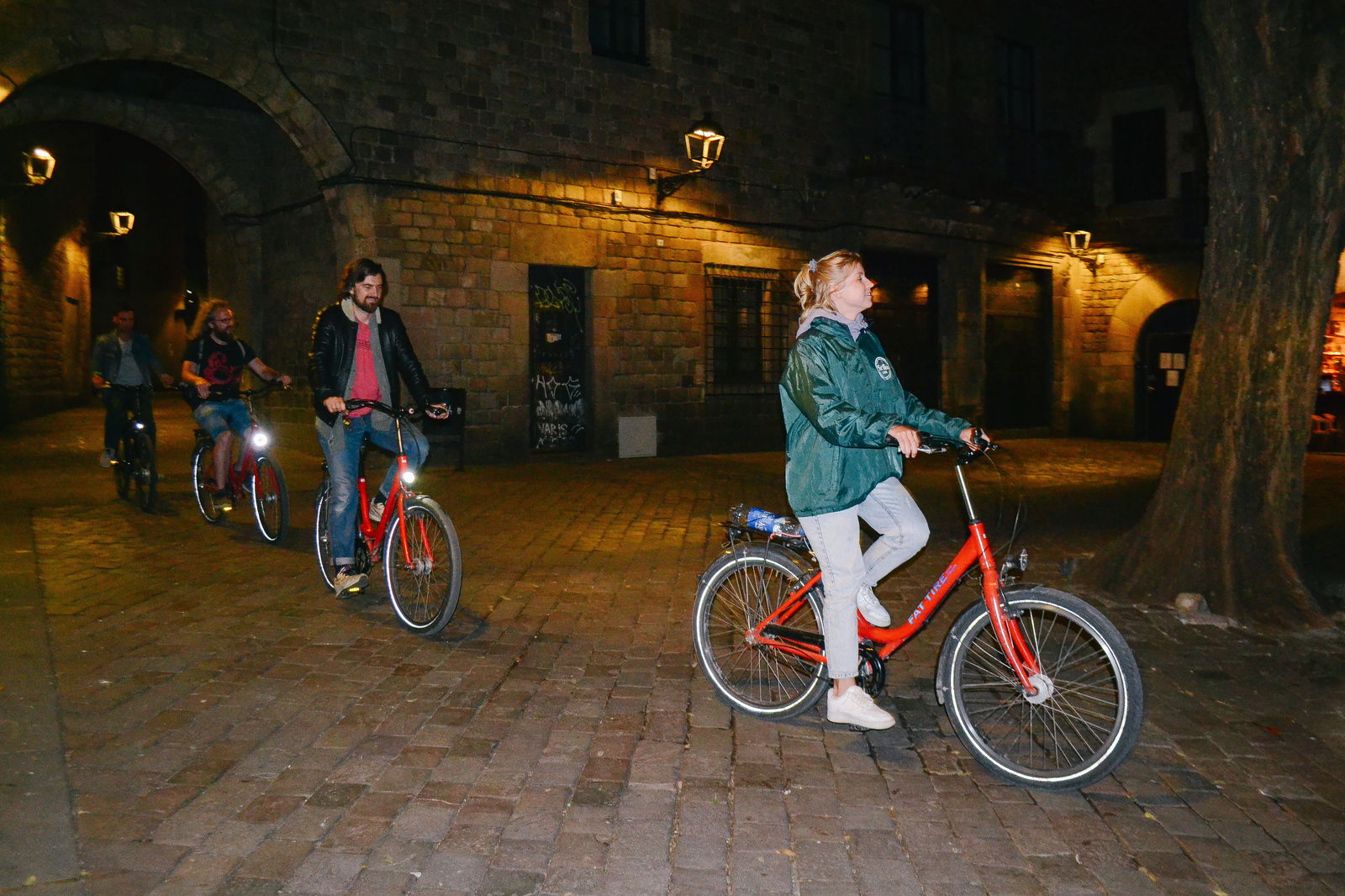 Barcelona Night Bike Tour with Local Tapas and Cava Stop