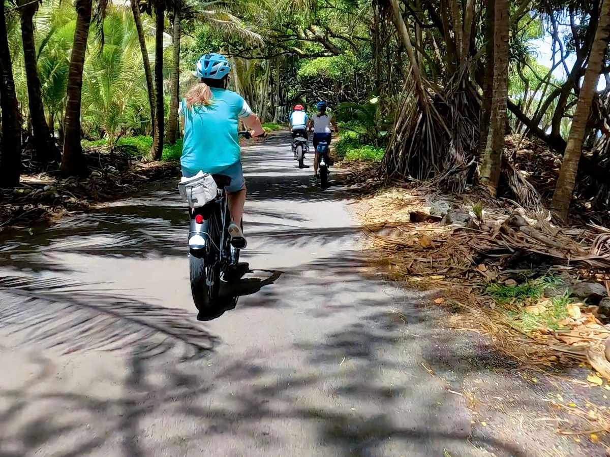 Meet in Keaau, then take a 35-minute ride to Sea View to explore the lush southeastern rainforest. Ride past dramatic beach cliffs, through natural tree tunnels, and across the hardened lava flow from the 2018 eruption. Your knowledgeable guide will share fascinating stories about life on an island shaped by the world's most active volcano. You'll also visit the Big Island's newest black sand beach, born from that very eruption.