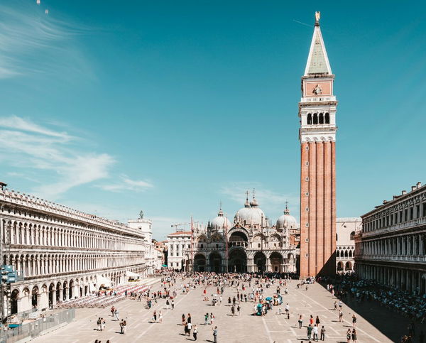 Marvel at the architectural wonders surrounding the square: the Gothic Doge's Palace, a symbol of Venetian power, and St. Mark's Basilica, adorned with dazzling mosaics. Your tour concludes with a guided exploration inside St. Mark's, a treasure trove of Italian art and culture.