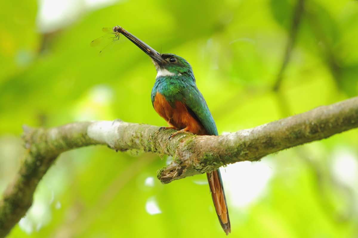 In addition, tour guests can observe less common resident species like the Iron Architect and the Laughing Falcon, a good-sized hawk whose presence is an indicator of a healthy environment. It's also possible to see the Black-Cheeked Woodpecker and Purple Trogons. Among the aquatic habit birds, which are the most difficult to observe, guests might be graced with the presence of Uniform Crakes and White-throated Fledgling.
