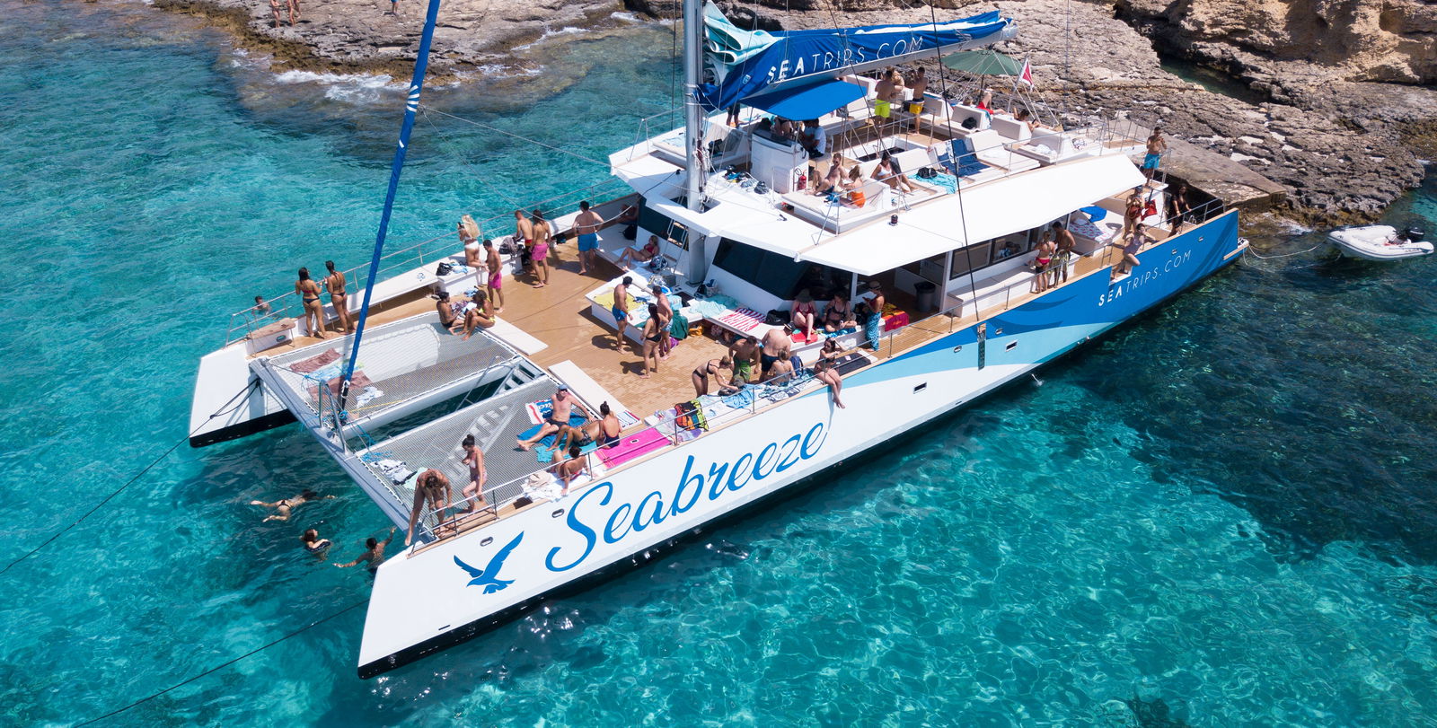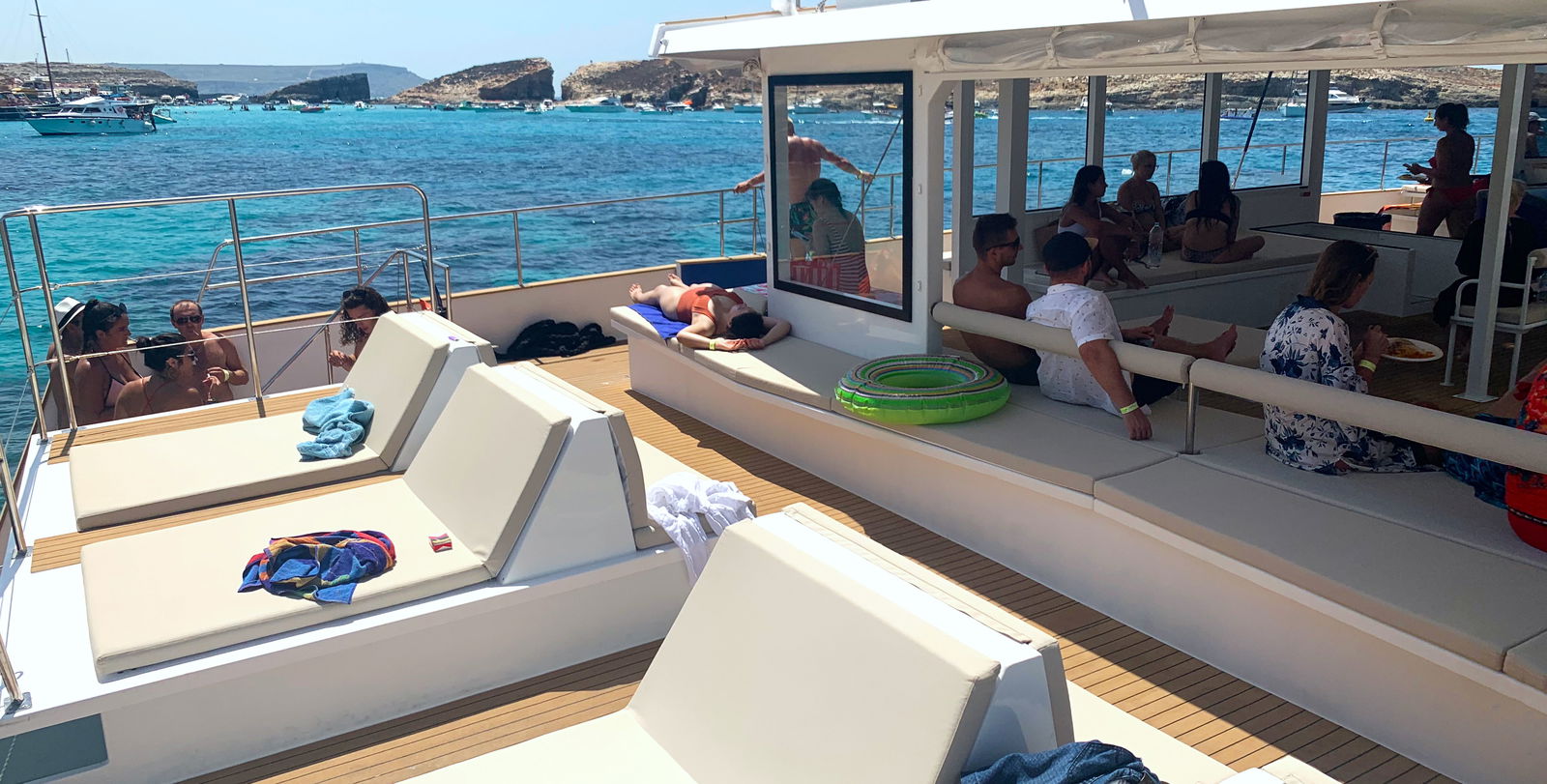 Hop onto Europe's most spacious passenger catamaran, and set sail! Relax and enjoy the adult-only atmosphere as this luxurious vessel takes you to the best swimming and snorkeling spots around Malta - you'll stop at two or three incredible locations along the way. Visit the Blue Lagoon and Crystal Lagoon around Comino Island - the Blue Lagoon is Malta's most famous swimming spot, while the Crystal Lagoon is accessible only by sea, and features much deeper water. You may also visit Ghajn Tuffieha, where you'll have time to swim, snorkel, or relax with a cocktail in hand.