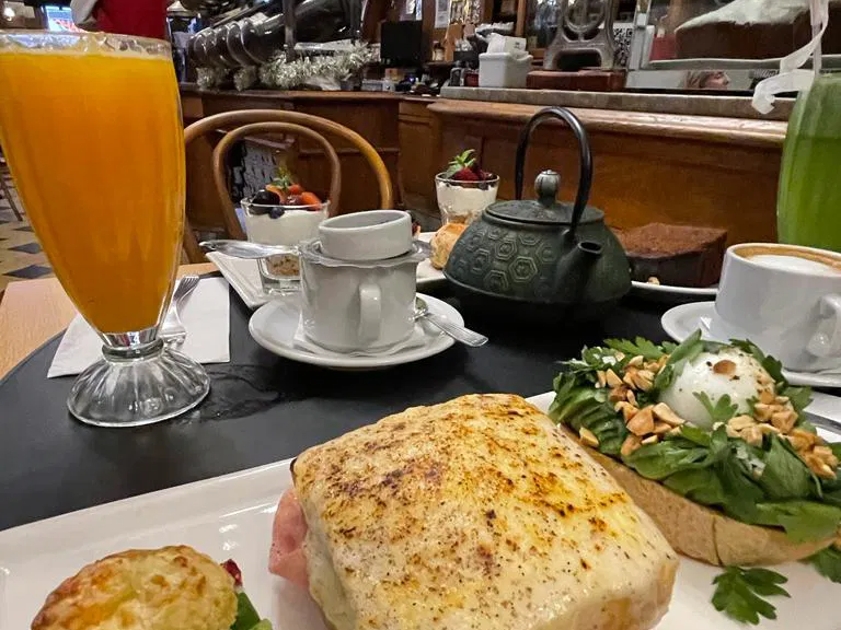 This experience includes a brunch for two, featuring: mini avocado bruschetta, Croque Monsieur with ham, a caprese sandwich, yogurt bowl with granola and fruit, a choice of "Budin" (Argentine sponge cake) in various flavors, mini cheesecake, sweet scone with marmalade and cream cheese. To complement your meal, enjoy fresh orange juice or ginger lemonade and tea or coffee.