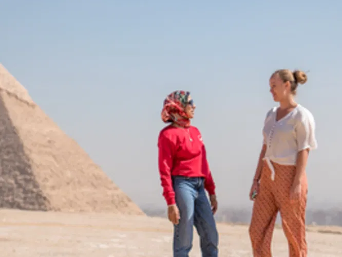 Next, visit Memphis, the ancient capital of Lower Egypt until around 2200 BC. Today, its legacy lives on in the towns of Dahshur and Saqqara. Wander through the ruins, soaking in the atmosphere of this once-great city—but don't stand still too long, or you might just mummify! After exploring these less touristy yet fascinating pyramids, return to bustling Cairo, a striking contrast to the ancient wonders just uncovered.