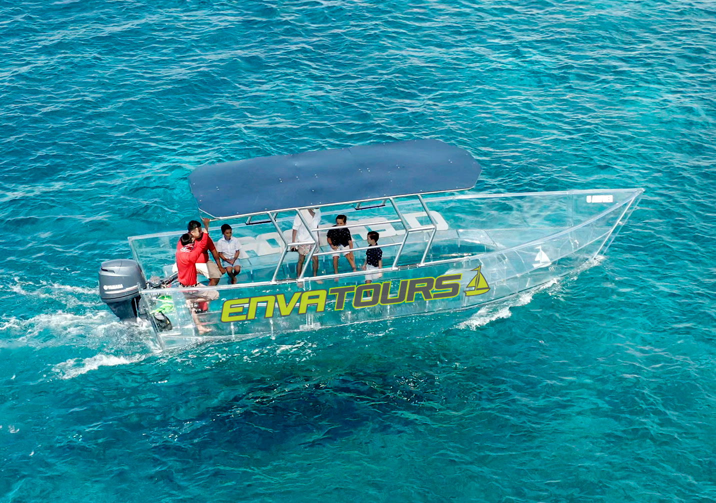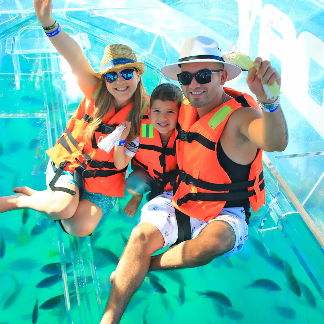 Ride this amazing see-through boat in Cancun and experience an adventure like never before.