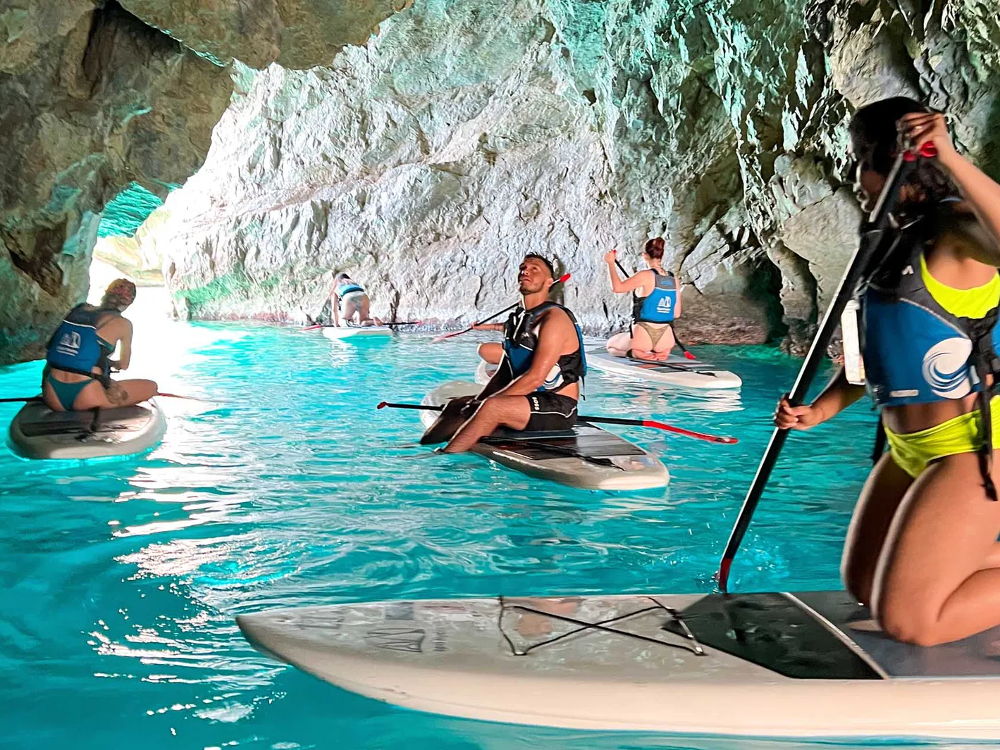 Begin your journey on the beach, where you'll collect your equipment and receive a briefing from your guide. Then, set out to explore hidden beaches and secluded caves, accessible only by paddleboard. Dive into Capri's crystal-clear waters and soak in the breathtaking natural scenery. Marvel at the magical interplay of light on the water and embrace the unique sensations of the sea breeze against your skin.