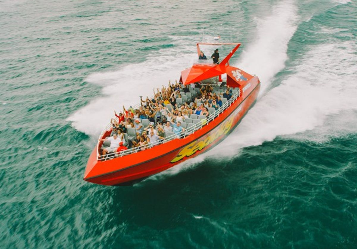 Departing from Navy Pier, enjoy exhilarating high speeds and full 360° spins during this jet-propelled ride that blasts off to start and splashes down to stop. Experience full-throttle slalom runs, sharp twists and turns, and feel the raw power and excitement of Seadog Extreme's two 1400 HP engines. Also, enjoy music and a fun narration about Chicago's history and architecture throughout your cruise.