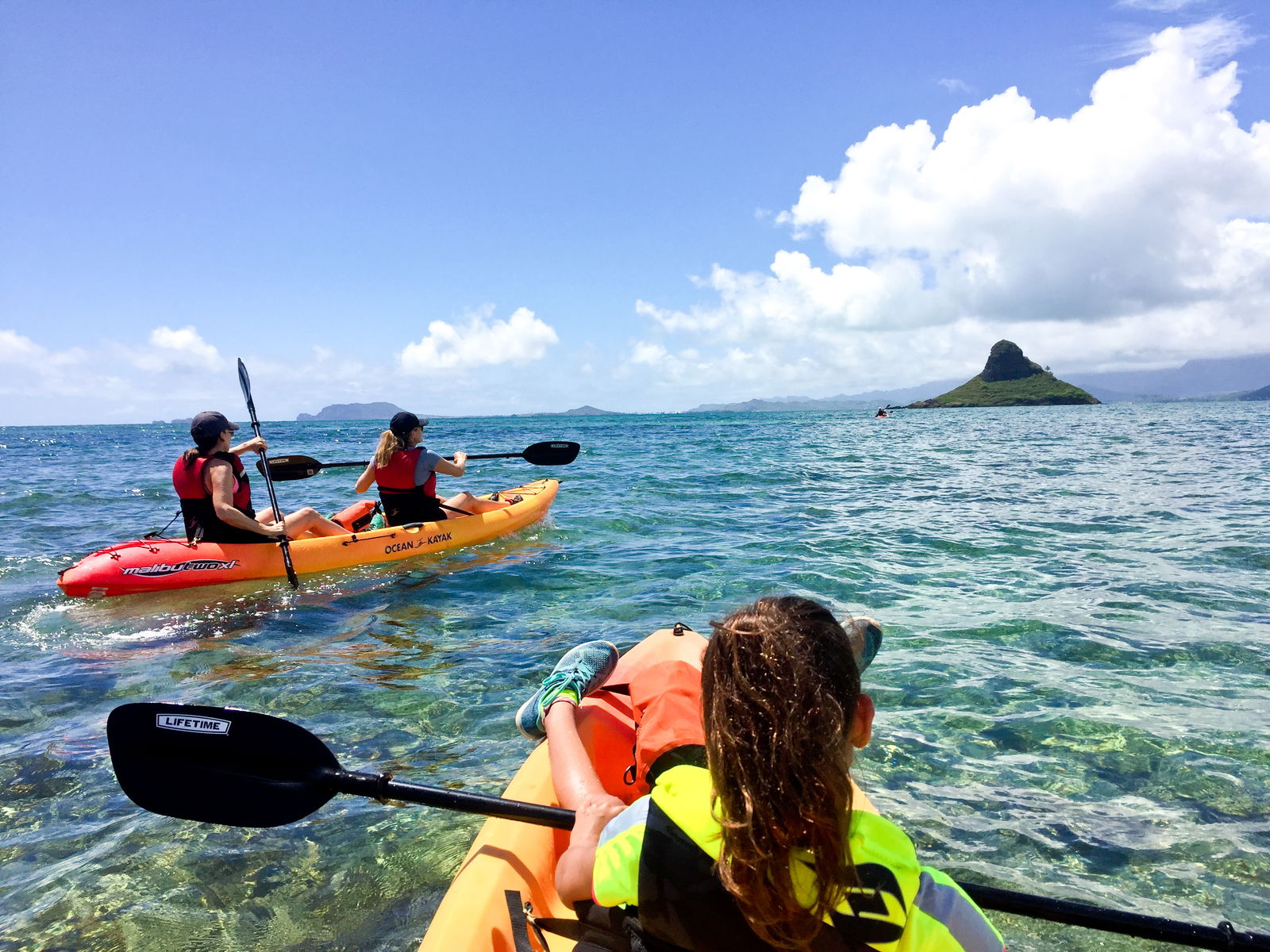 Experience ocean kayaking to Mokolii on our Chinaman's Hat Self-Guided Kayak Tour. You will be provided everything you need to have a great and safe time out on the water. You'll get kayaks, seatbacks, life vests, dry bags, safety equipment, and private instruction before you set out on your own to experience Chinaman's Hat.
