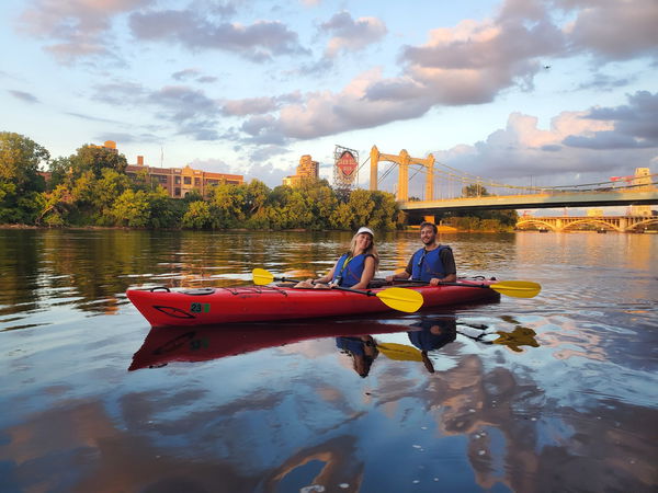 This 2-3-hour downriver kayak on the Mississippi River features a dramatic range of scenery from wild to urban.