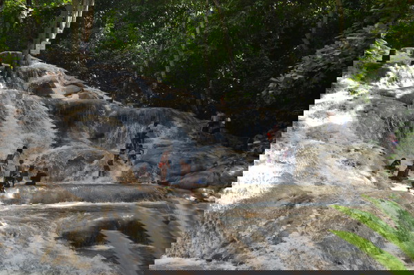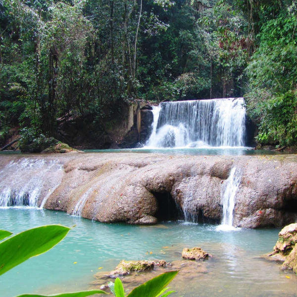 Dunn's River Falls is one of Jamaica's most iconic natural attractions, known for its stunning beauty and unique features. The falls are a series of terraced cascades that stretch about 180 feet high and 600 feet long, forming a natural staircase that you can climb. You'll do this climb in a human chain, led by experienced guides, making it a fun and interactive experience. The falls flow directly into the Caribbean Sea, offering a rare combination of a waterfall and a beach in one spot. For an added thrill, the Zipline Adventure gives you a bird's-eye view of the falls and the lush rainforest canopy. Soaring high above the ground, you'll experience the falls from a completely different perspective, with multiple zipline lines and suspended bridges making it an exciting aerial journey.