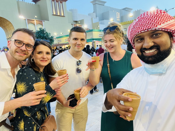 At the Bedouin Village, witness an Emirati making Arabic coffee live, then taste it amidst the scenic desert oasis. Enjoy the stunning sunset and capture lovely photos of the endless wavy dunes.
