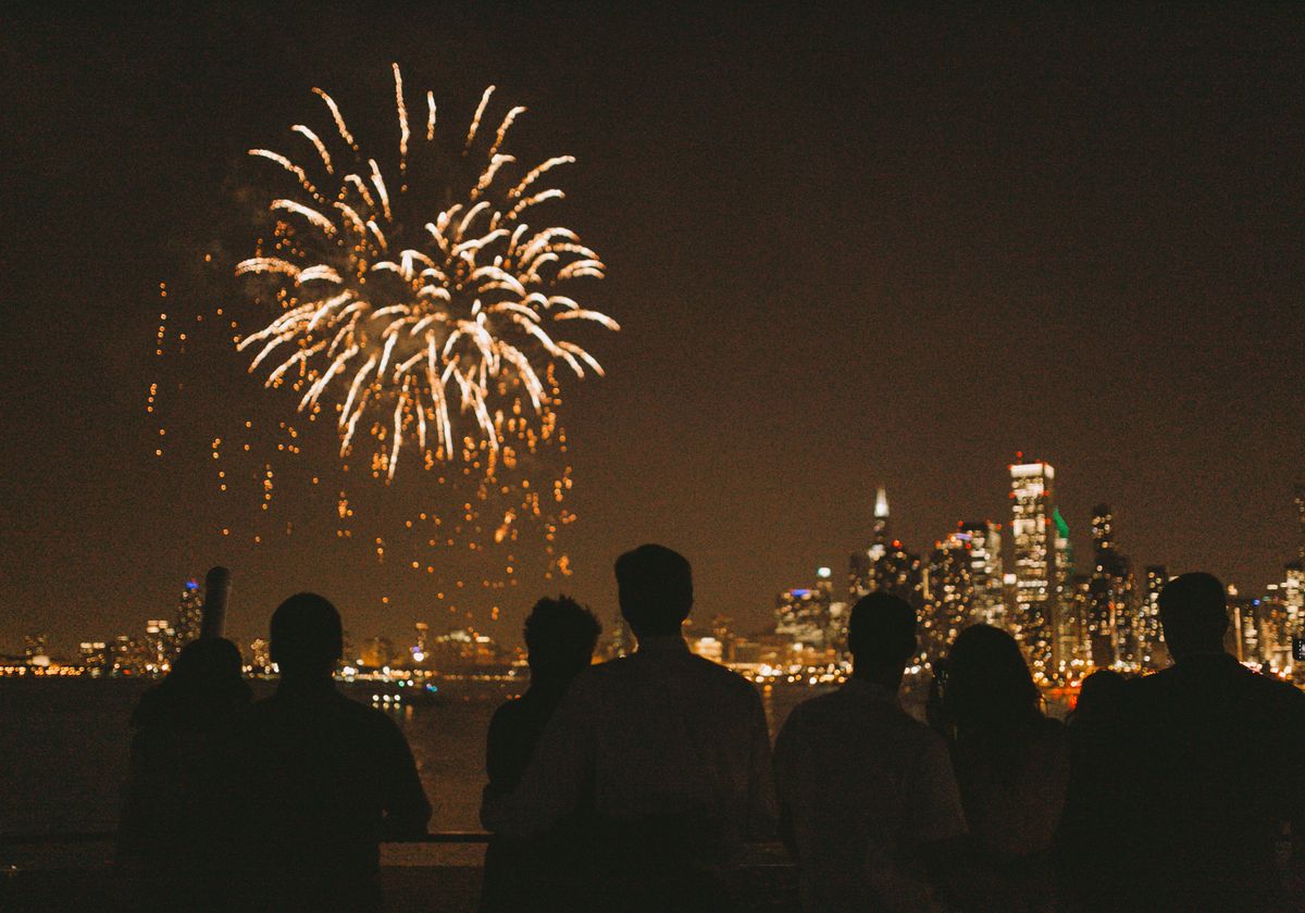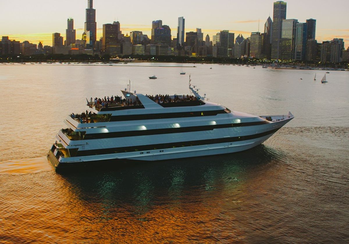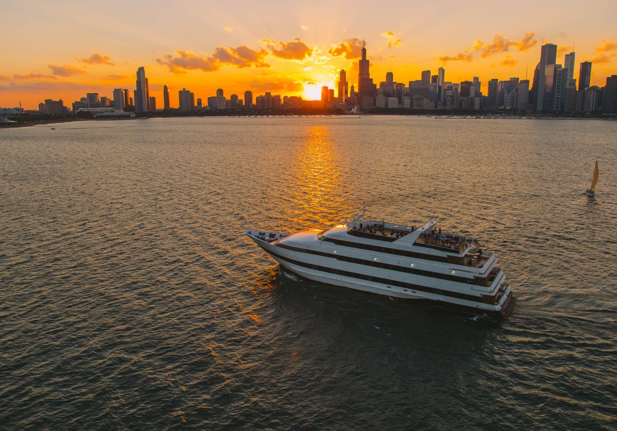 While onboard, you'll enjoy chef-prepared plated menus, creative cocktails, distinctive service, and breathtaking views of Chicago's skyline and attractions from our climate-controlled interior and open-air rooftop decks. Near the end of the cruise, the sky will illuminate with a display of color and thundering sounds of Navy Pier's outstanding fireworks show.