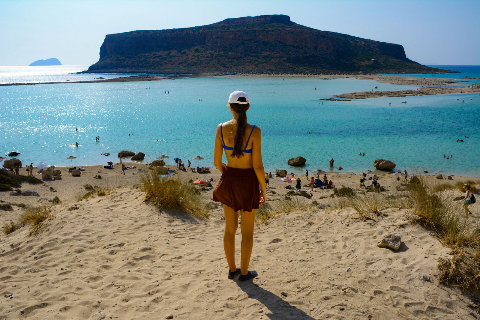 Once you arrive at the island of Gramvousa, you can swim or hike to the top of the island to the Venetian fortress. You'll have two and a half hours before continuing to the lagoon of Balos. You'll have about three hours to spend at the lagoon. After enjoying a relaxing time at the lagoon, the boat will take you straight back to the port of Kissamos. This is a great photo opportunity as the sun will be behind you as you look out at the scenery of the island.