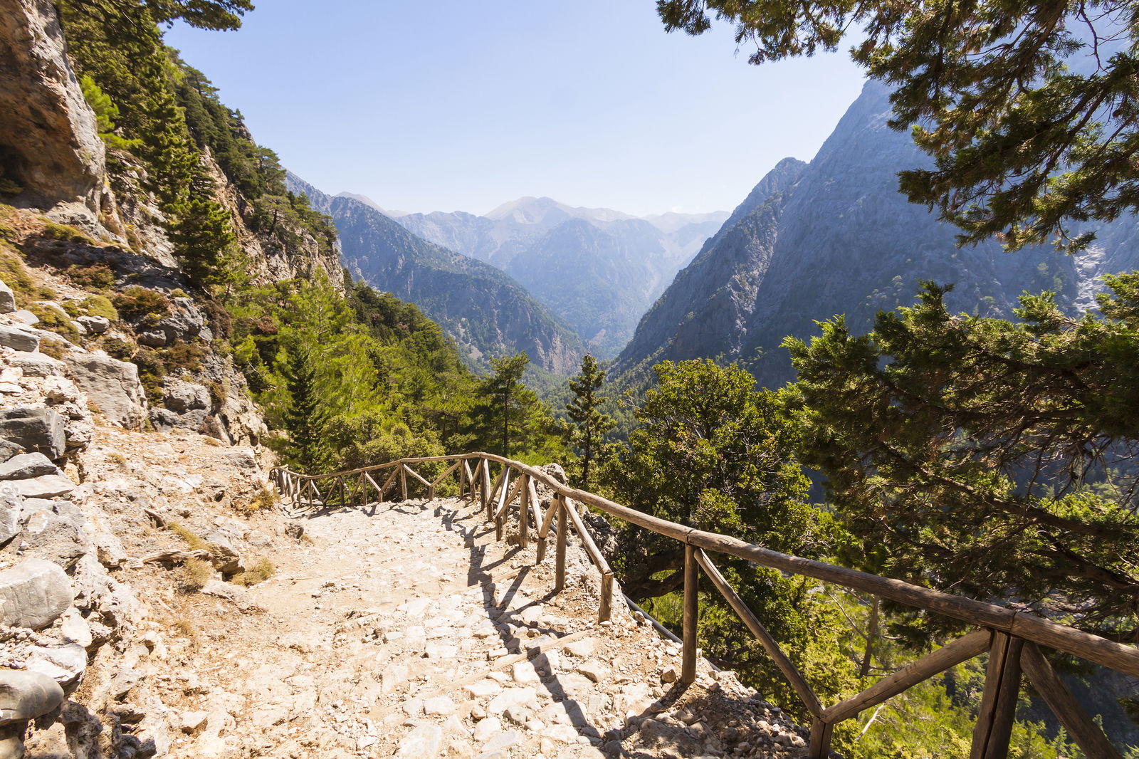 Head to Samaria Gorge from Chania to hike through white mountains. The hike features ancient forests, rivers, and mountain views.