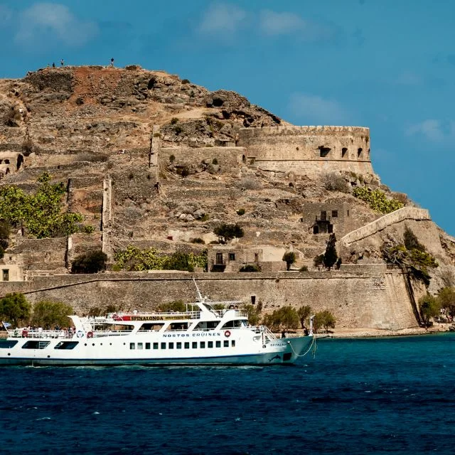 Enjoy a walking tour of the island of Spinalonga during a full-day excursion from Elounda to the island. Visit Agios Nikolaos and Elounda and swim in the crystal-clear waters of Kolokytha, where you can enjoy a delicious BBQ lunch. A spacious, comfortable bus will carry you from designated locations, along the coast through the St. George Gorge to Elounda, a tranquil coastal resort. You will get on board the boat to visit the bay and the beach of Kolokytha, a secluded haven that offers a respite from daily life. You can swim and eat a delicious BBQ on board.