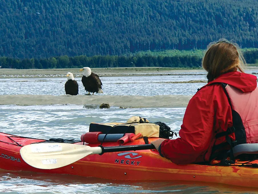 Paddle through Alaska's breathtaking coastal waters on this kayaking adventure! After a scenic drive to North Douglas Island, gear up and hop into a stable two-person kayak with your guide leading the way. Follow the ancient route of the Aleut Indians as you glide past the pristine shoreline, spotting porpoises, seals, sea lions, eagles, and maybe even whales!