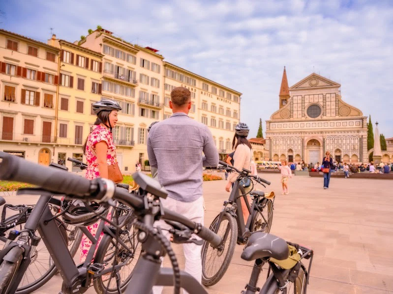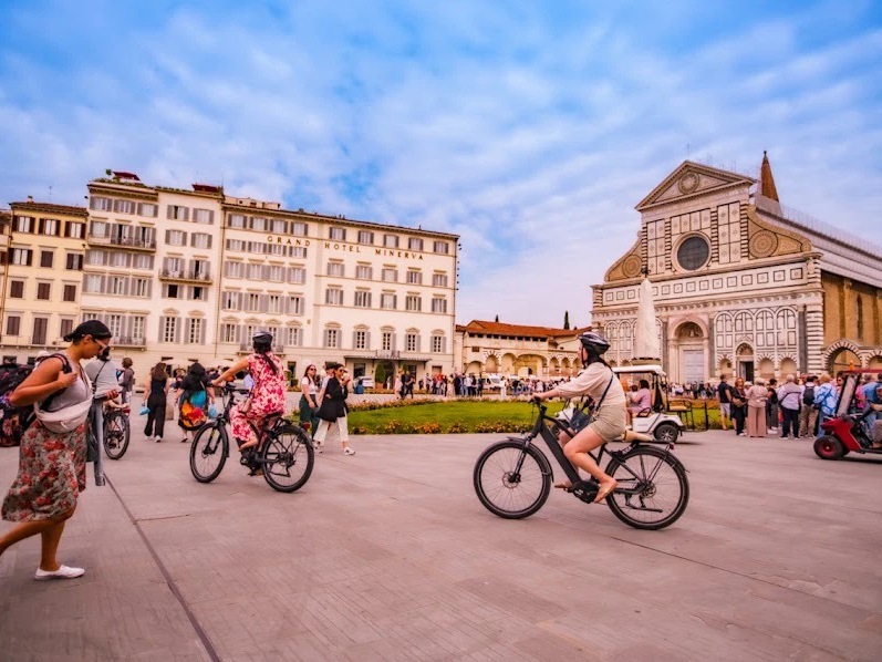 The adventure starts in the historic city center, where you'll meet your guide, receive a quick e-bike briefing, and be fitted with the e-bike. After a brief test ride, your two-wheeled adventure begins! Immerse yourself in Florence's timeless atmosphere as you explore its masterpieces, from Piazza Duomo and the Cathedral of Santa Maria del Fiore to the lively Piazza della Signoria.