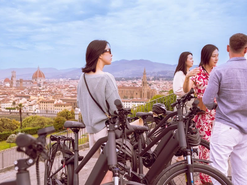 You'll then cycle toward the famous Florentine hills, along scenic avenues leading to Piazzale Michelangelo, the city's most iconic viewpoint. Enjoy breathtaking views of Florence, with free time for a coffee and unforgettable photos.