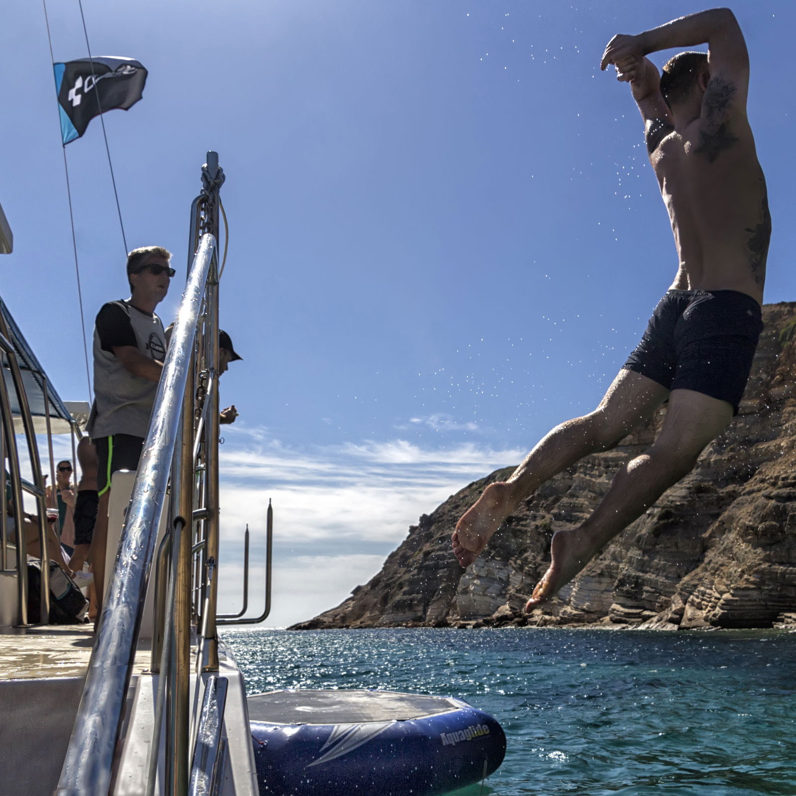 Once you've filled your stomach and had a splash in the water, grab a cocktail back onboard and dry off in a sunbathing net as you cruise back toward Lagos.