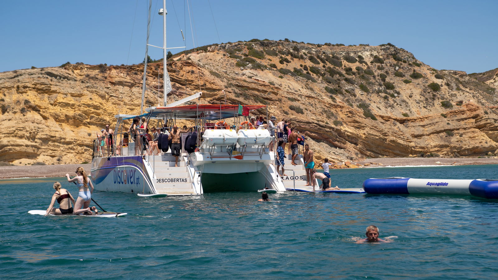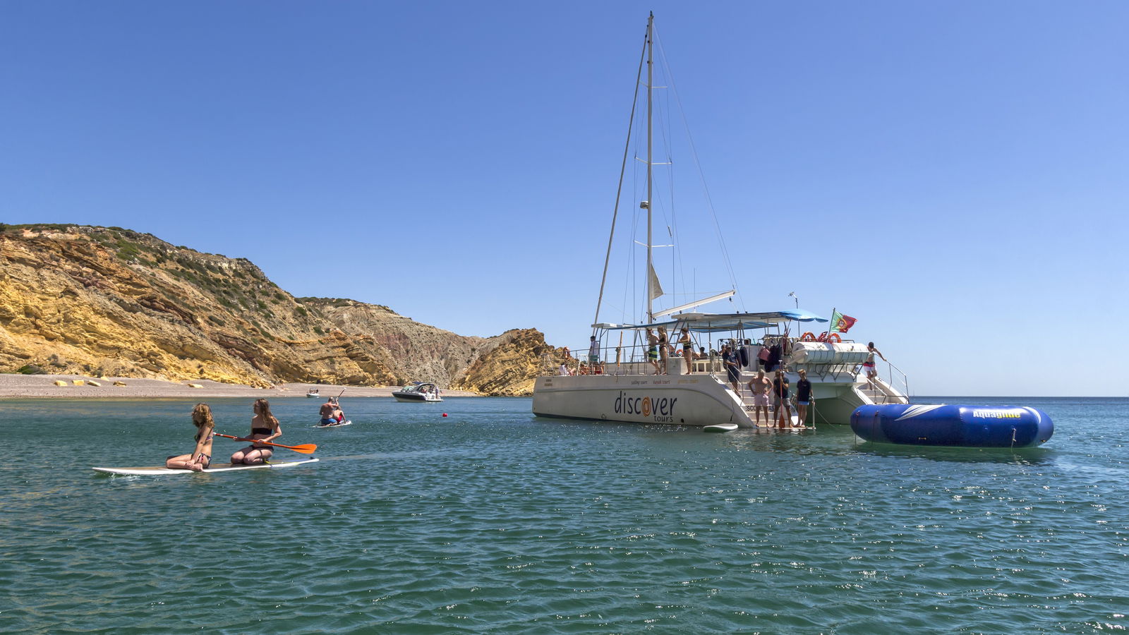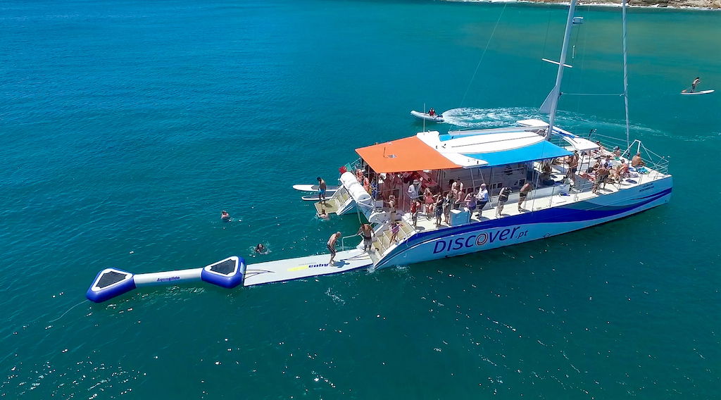 You'll drop anchor at the fishing village of Burgau and enjoy a healthy lunch before spending time doing aquatic activities like stand-up paddleboarding, snorkeling, and taking on an inflatable, bouncy water park.