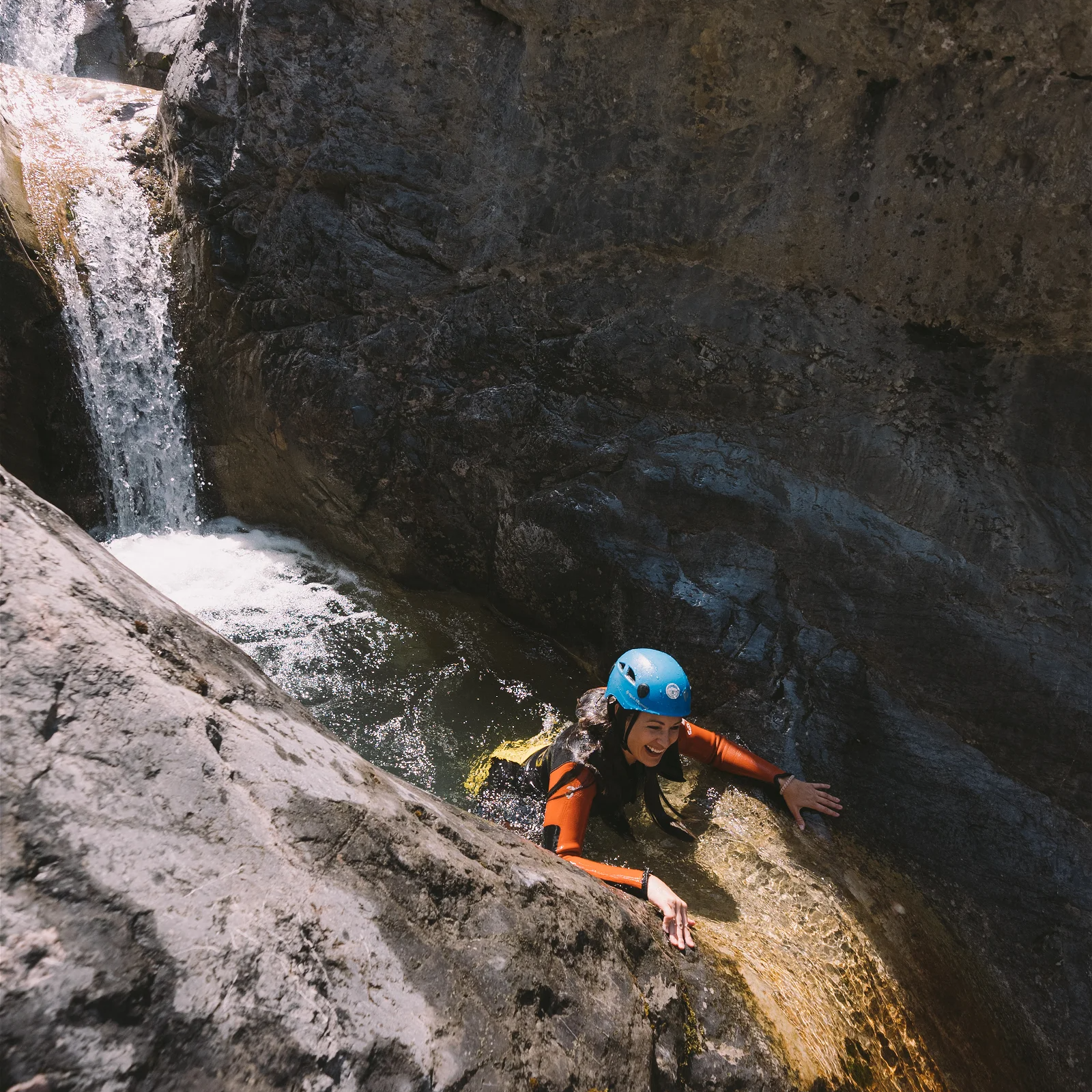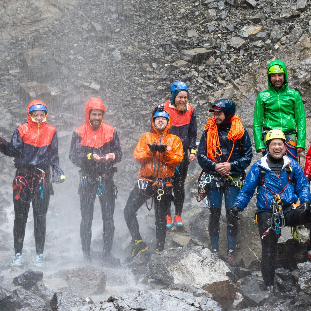 The route chosen for your adventure will depend on various factors such as current conditions, your skill level, and your expectations. It may involve an exciting series of short rappels and slides at the base of awe-inspiring 100-meter cliff walls. Or you could end up on a freehanging 60-meter rappel right beneath a waterfall!