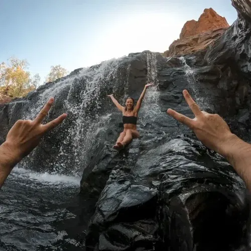 A must-see inclusion in your day is the NitNit Dreaming two-hour Katherine Gorge (Nitmiluk) boat cruise. You will journey through the middle of cliff faces 70m high, with the sun's natural lighting providing ever-changing colors throughout the landscape and rock formations. Soak in the authentic culture and stories of the traditional owners of the land, the Jawoyn people of Katherine, as you are guided through this wonderful area before you disembark and we make our way to the picturesque Edith Falls (Leliyn) region. Feel free to take a refreshing dip in the huge natural plunge pool of Edith Falls or simply relax and take in your surroundings.