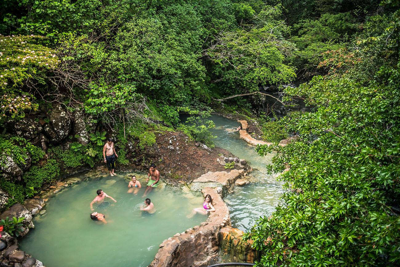 Beautiful and relaxing, the volcanic hot springs are naturally heated by the Rincon de la Vieja Volcano. Surrounded by a dense dry tropical forest, the Termales de Rio Negro is a beautiful and peaceful place. The crystal clear waters of the river flow near the 10 pools built on the riverbank filling them with thermal waters rich with minerals.