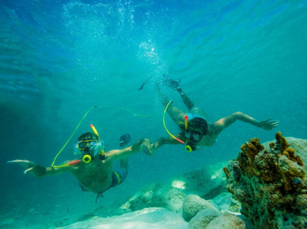 Sail and swim in the crystalline waters of Aruba on this five-hour luxury Spanish Lagoon cruise. The professional guides will escort couples through the hidden treasures of this unique lagoon where they will snorkel the Spanish Lagoon Barrier Reef. Try the 3rd lung experience, rope-swinging, or enjoy the double kayaks available. A private chef will grill lunch on board. Enjoy hand-crafted cocktails and a premium open bar.