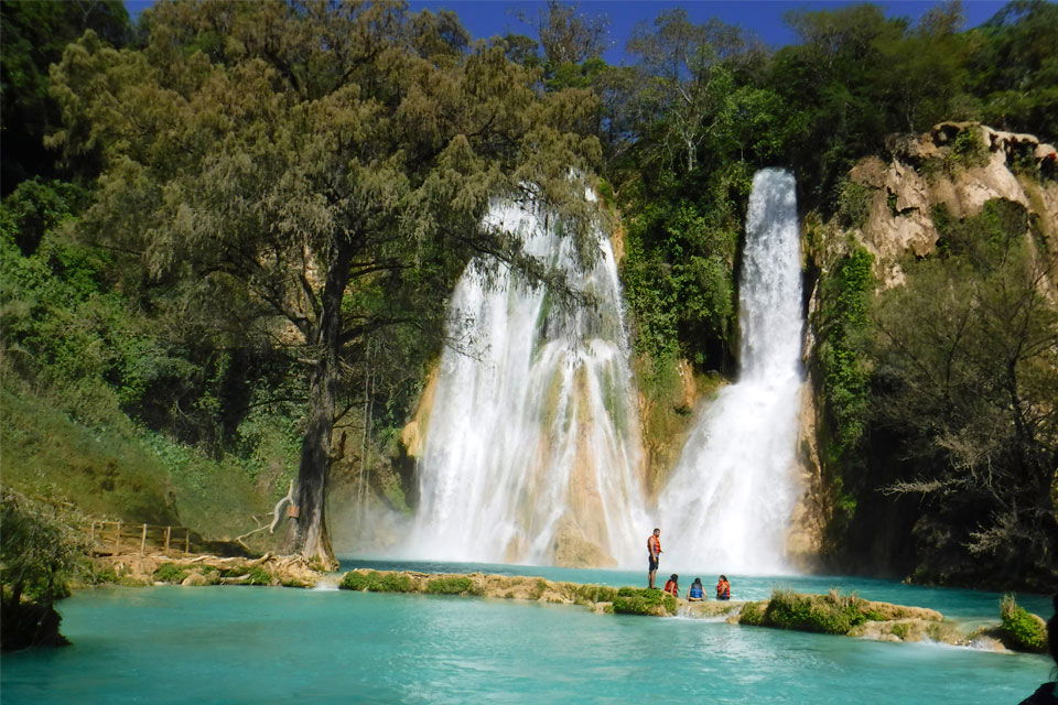 This tour takes you to one of the best waterfall areas in the world! Head off to do some epic waterfall jumping along a stretch of the Micos River, where you'll float through 7 falls. Begin with hotel pickup from Ciudad Valles heading to the Micos Falls. Arriving at the site, you'll have the opportunity to cascade jump 7 waterfalls of different heights, from 1 to 8 meters. Micos canyon is surrounded by rocky walls and jungle vegetation. Jumping is optional and in the event you don't want to jump the highest waterfall, you can go around and swim in a 30-meter waterfall called "El Toro". After, head towards the Minas Viejas Waterfall where you will go down 300 steps to reach its impressive 50-meter drop forming beautiful turquoise blue pools. Here you can jump from 3 meters into the pools and swim in the water. Afterward, head to lunch at a Micos restaurant (a la carte or buffet) and then return to your hotel in Cuidad Valles. This is an amazing waterfall adventure to experience.
