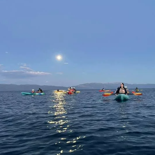 Experience Lake Tahoe in a new light. A guided kayak tour of Lake Tahoe during the full moon!