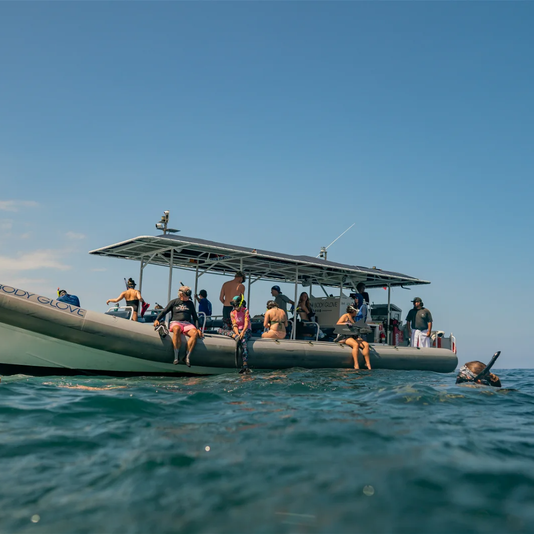 But that’s not all – your luxury experience is complemented with a delicious snack breakfast and a picnic lunch amidst nature’s wonders, along with unlimited water and soft drinks to keep you refreshed. Dive into the beauty of Kona’s underwater sites and enjoy the perfect mix of luxury, adventure, and relaxation on our Super-Raft. Book your spot today and transform your snorkeling adventure into a luxurious escape you’ll never forget!