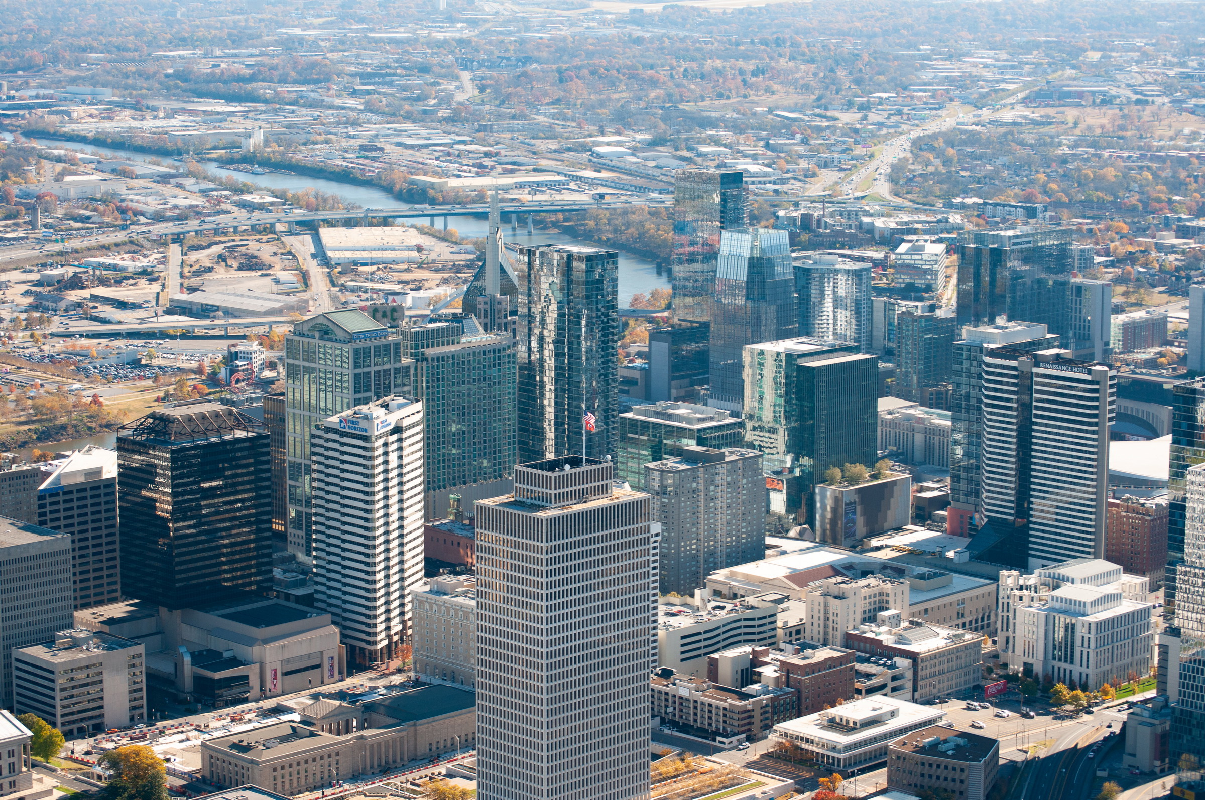 Nashville helicopter tour. Fly over downtown, Broadway, Nissan Stadium, Tennessee State Capitol, and the Cumberland River.