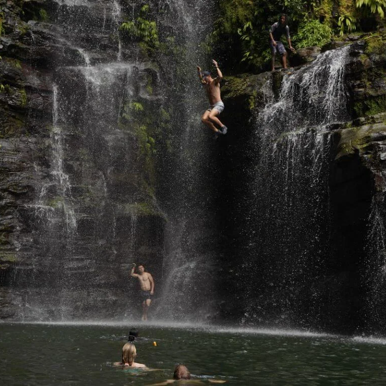 Participants will hike through the Jungle (45 min) to one of mother nature's water parks. Jump, swim, climb, and explore at this two tier waterfall. You will first head to the bottom waterfall of Nauyaca. This waterfall has an 80ft face. Swim in the huge pool at the bottom or if you are feeling more adventurous, have one of the professional guides take you to one of the three areas where you can jump from (7ft, 25ft, 33ft).