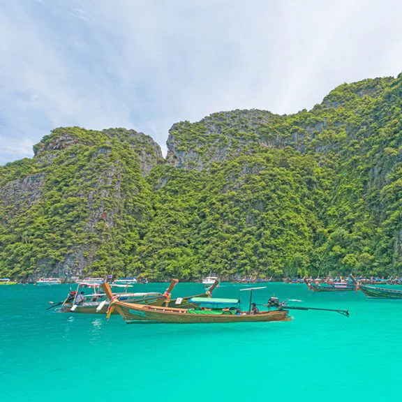 Begin your adventure with a trip to Maiton Island, where you'll enjoy snorkeling and marvel at the beautiful coral reefs, sea anemones, and a variety of fish. Next, visit the stunning scenery of Maya Bay and Loh Samah Bay. Optionally, you can use long tail boat services (additional charge). Enjoy swimming in the emerald waters of Pileh Lagoon and capture photos at Viking Cave and Monkey Cave.