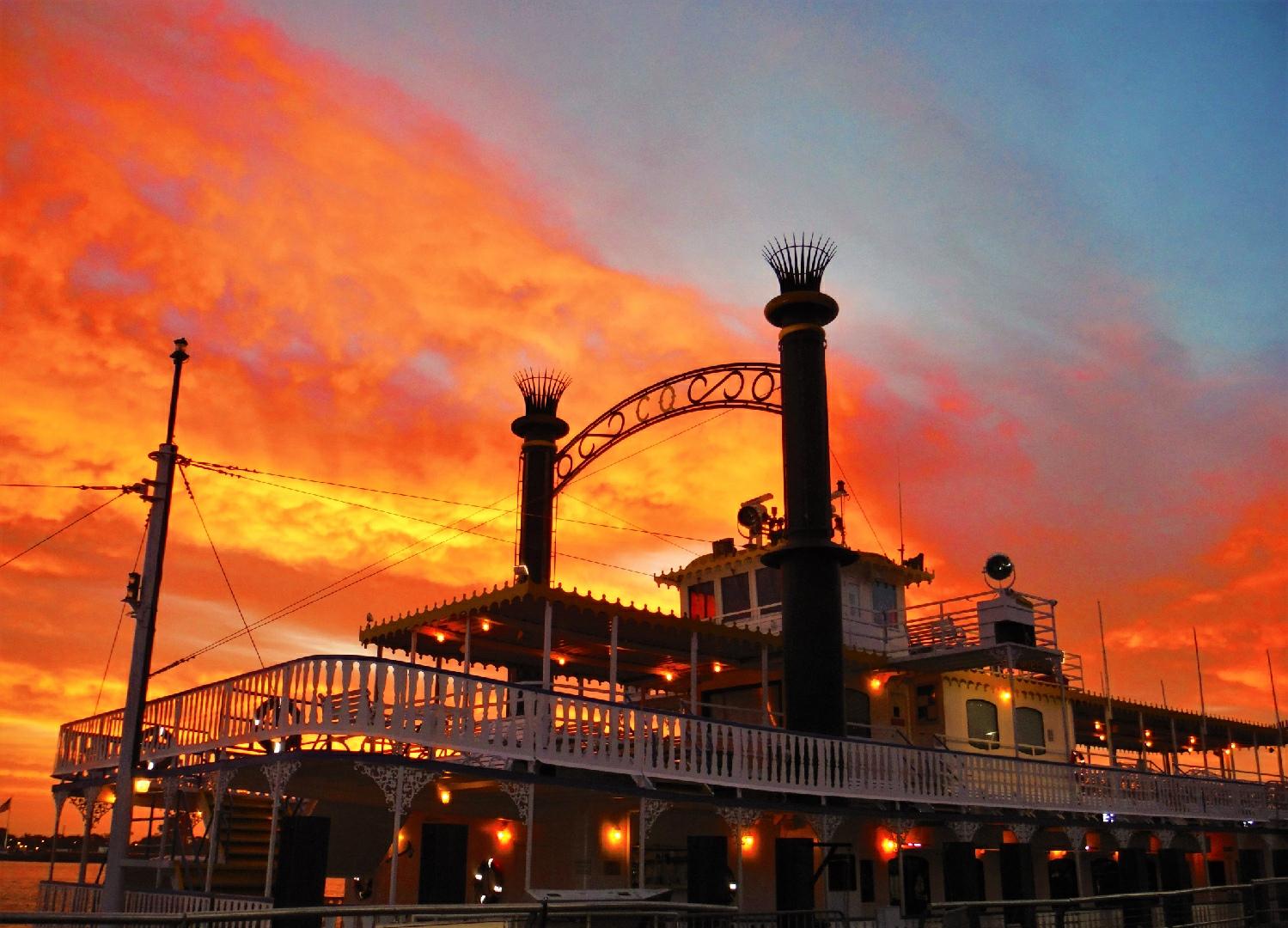 Enjoy a romantic evening cruise down the Mighty Mississippi with a delicious Creole buffet and a live jazz band!