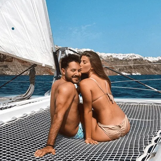 Join a 5-hour shared, premium catamaran cruise in Santorini, including a BBQ meal, drinks, and transfers.