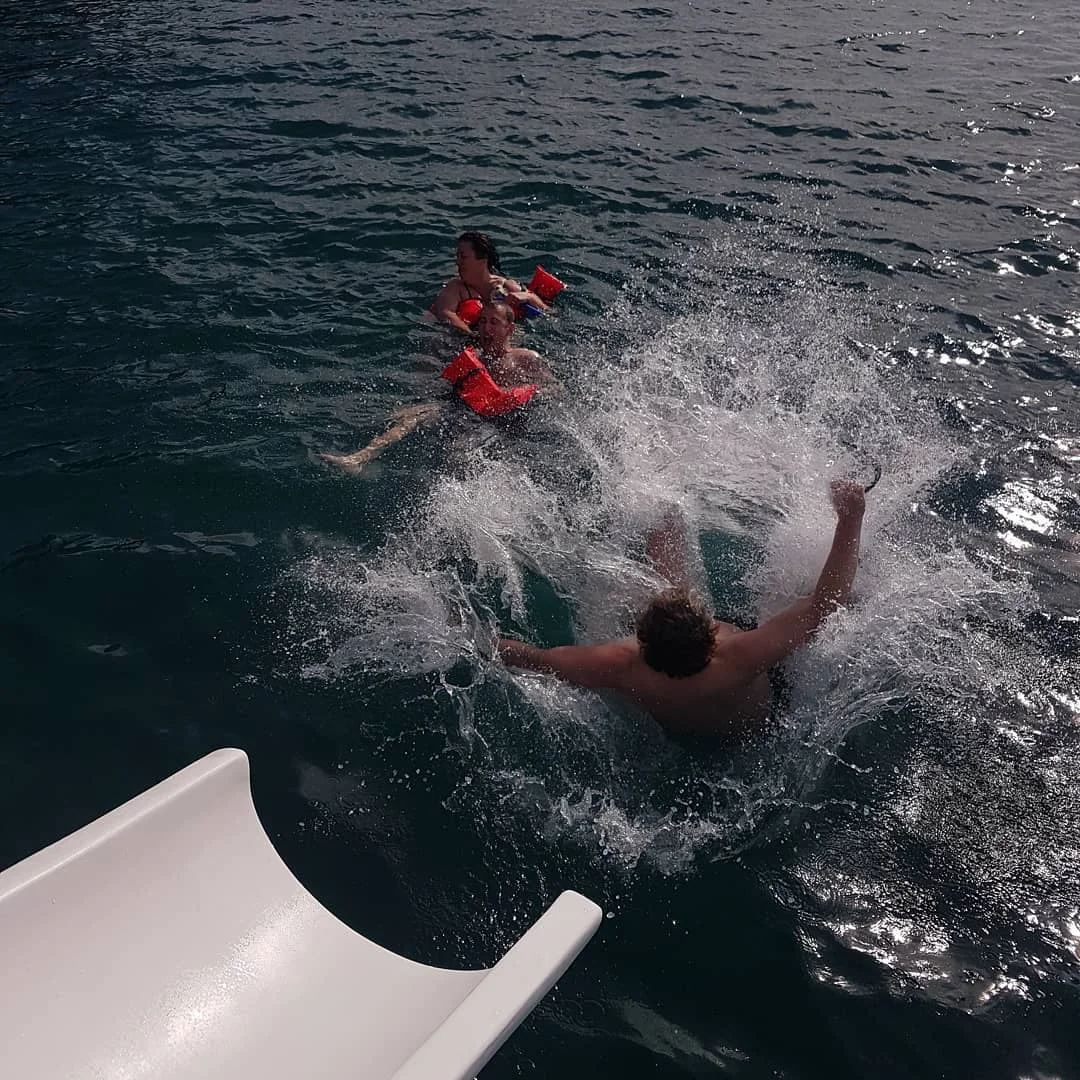 During this tour, you'll receive on-demand service while soaking up stunning coastline views. For the more playful sightseer, you'll get the chance to slide off the back of the boat into the water from a water slide. This private boat tour allows up to six guests.