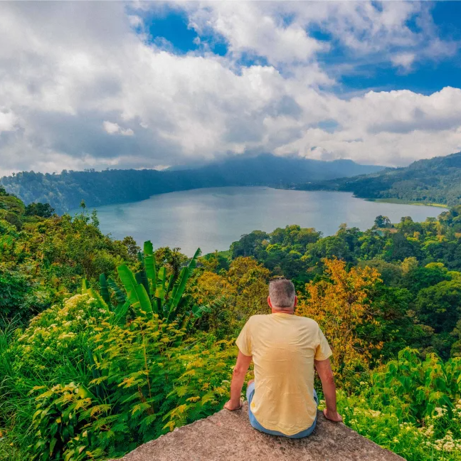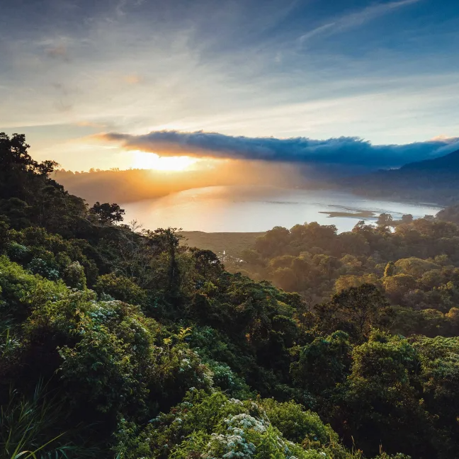 After departing from your accommodation very early in the morning, you'll head north to arrive at a spectacular sunrise point just before 6 a.m. You'll begin the day's trek toward the Twin Lakes Bali, where both Buyan Lake and Tamblingan Lake await, shrouded in rainforest and home to unique Balinese wildlife. A real highlight of the day will be crossing serene Lake Tamblingan by traditional canoe, allowing your experienced guide to do the paddling while you sit back and snap photos of your majestic surroundings.