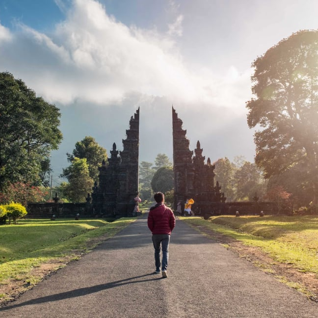 Next, you'll stop by Handara Gate, one of Bali's most popular photo spots, symbolizing a bridge between the real and spiritual realms with its photogenic stone arch built in typical Balinese style. You'll finish the day at Ulun Danu Bratan, a Hindu-Buddhist temple nestled on the banks of Lake Beratan. With 300 years of history and a feature on the 50,000 rupiah banknote, this is one of Bali's most iconic destinations for travelers and locals alike. Your guide will share the history before transferring you back to your accommodation. What a day!