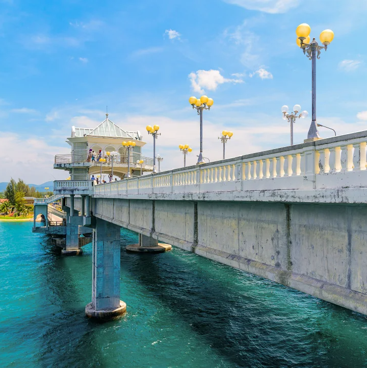 If you've already explored Phuket and want to venture beyond the famous island, a day trip to Khao Sok is a must. Join this full-day Khao Sok tour packed with activities and sights to complete your adventure. You'll start the day with a quick stop at Sarasin Bridge, one of Thailand's most beautiful bridges, famous for its shining elevated gazebos and the tragic story of two lovers who jumped off it in the 1970s. After strolling along the pedestrian bridge and capturing photos of the scenery, you'll head to Khao Sok National Park for a jungle trek, soaking in the lush greenery and spotting local flora and fauna. After a hearty lunch, get ready for rafting or canoeing down the Khao Sok River, a popular activity that offers stunning views of the area. You'll also visit Wat Panturat, or the "Monkey Temple," built on a limestone plateau and home to many playful monkeys, so keep your valuables close! Before returning to Phuket, don't miss the Khao Sok Viewpoint, where you can take in the breathtaking rainforest terrain. Be sure to whip out your camera to snap photos and create lasting memories of your day.