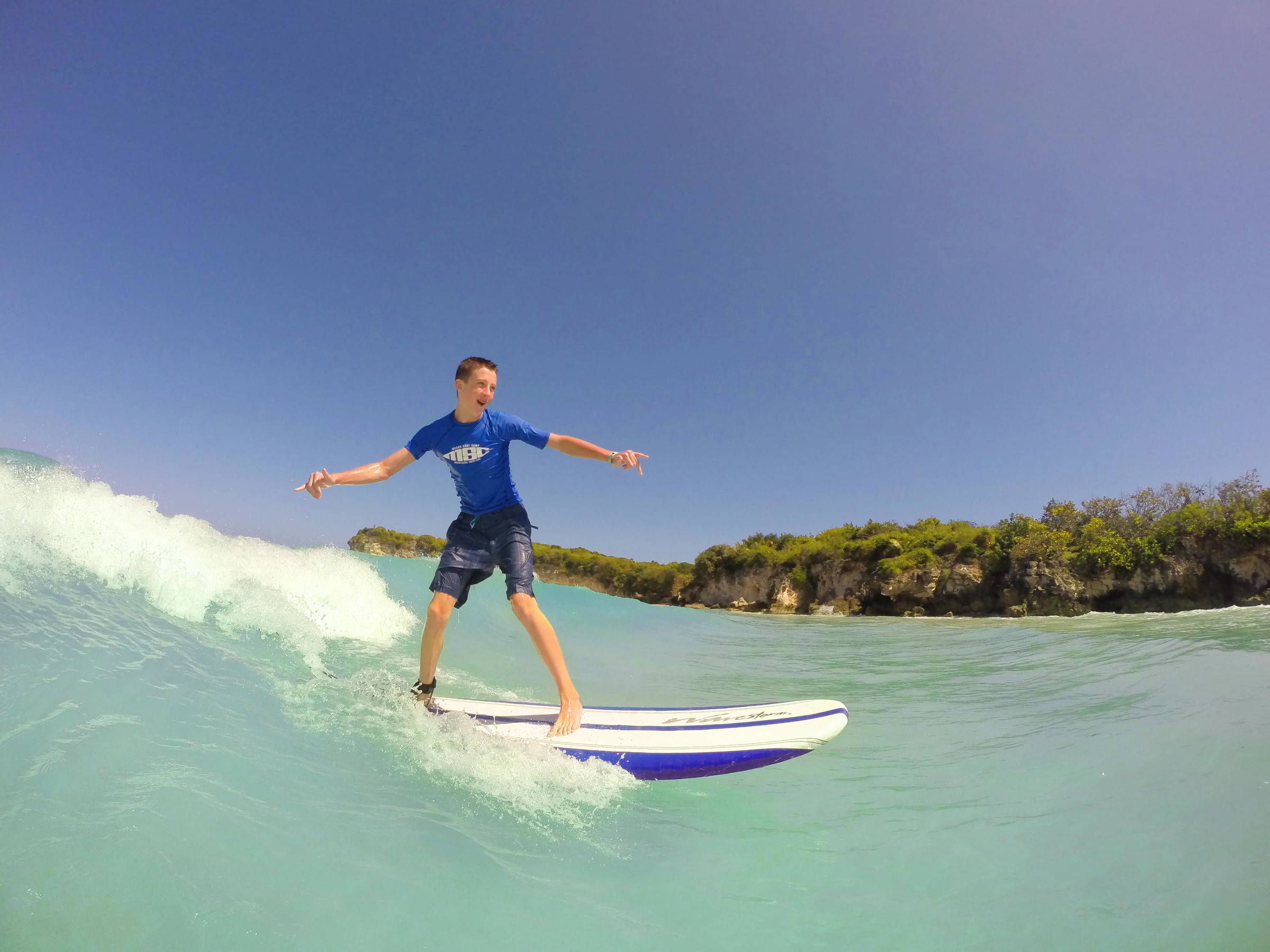Whether you're alone or with a group, private lessons offer one instructor for each student. The individual attention allows the student to catch the most waves while being corrected on form by the instructor for faster progress. Beginners receive a 15 minutes theory, safety and practice in the sand before getting in the water. The other levels go directly to the ocean after a short evaluation. Lessons are divided in two sessions and in the half time break surfers are provided coconut or purified water and some fruit. 2 hours total. Macao Surf Camp is the only school in the Punta Cana area that provides lessons at all levels of experience.